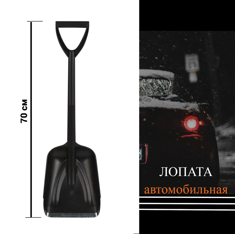 Лопата автомобильная с металлическим наконечником АвтоСтиль (700х210)